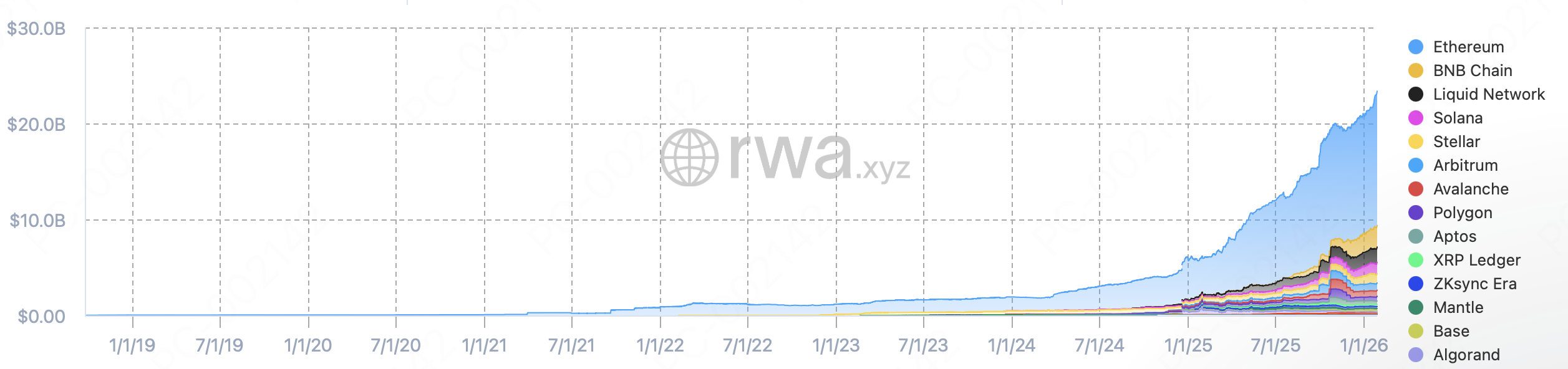 تتجاوز قيمة الأصول الحقيقية على شبكة إيثيريوم الآن 12.5$ مليار، ما يمثل أكثر من %65 من إجمالي سوق الأصول المُرمّزة. تبلغ قيمة الأصول على شبكة BNB Chain حوالي 2$ مليار، بينما تقل قيمة الأصول على منصتي سولانا وأربيتروم عن 1$ مليار. الفجوة كبيرة، بل وتتسع باستمرار.