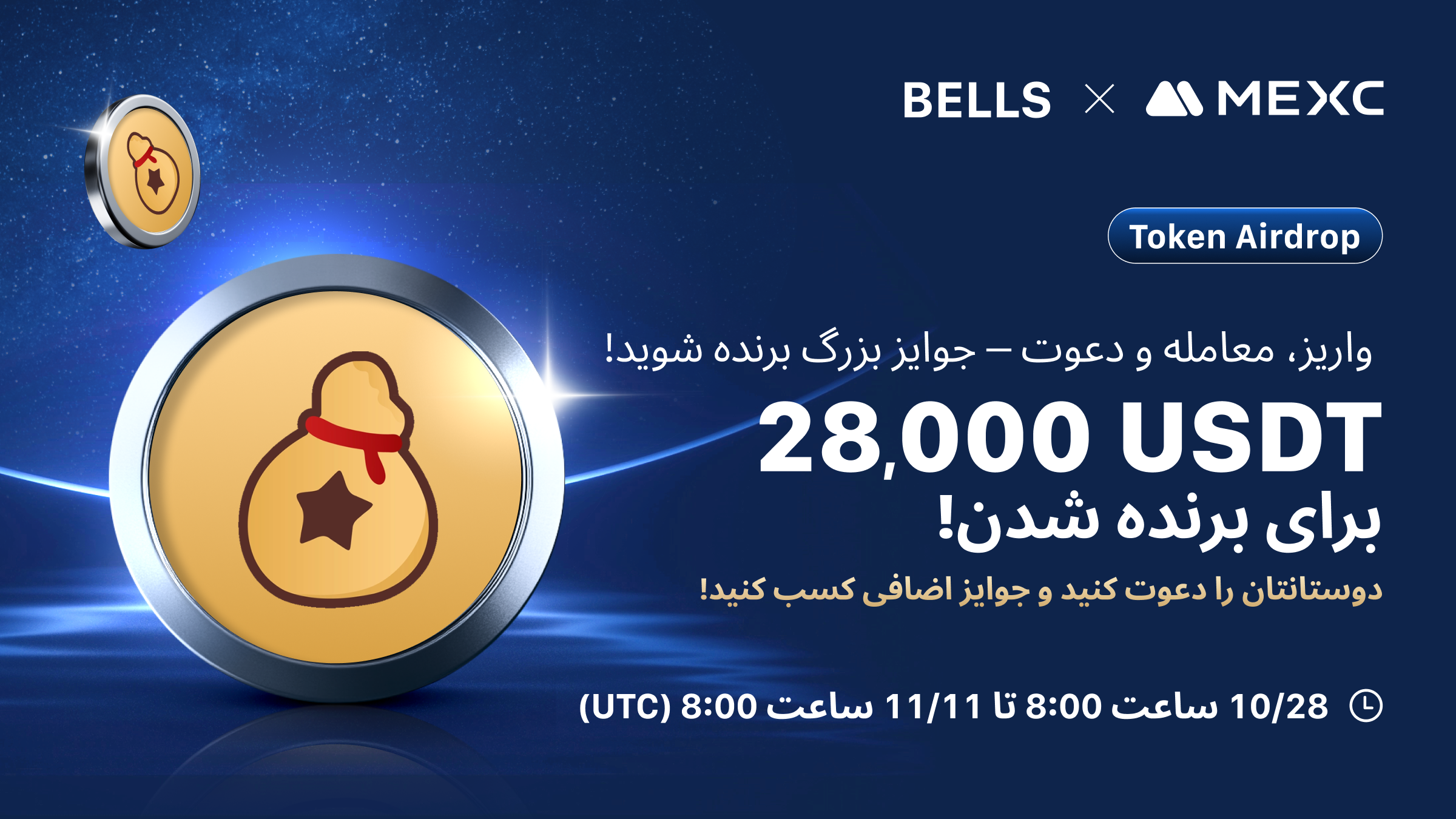 برای جشن گرفتن لیستینگ Bellscoin (BELLS)، پلتفرم MEXC هیجان زده است که مجموعه ای از رویدادهای انحصاری را برای همه کاربران MEXC راه اندازی کند، با 28000 USDT پاداش برای گرفتن! در اینجا جزئیات رویداد آمده است:
