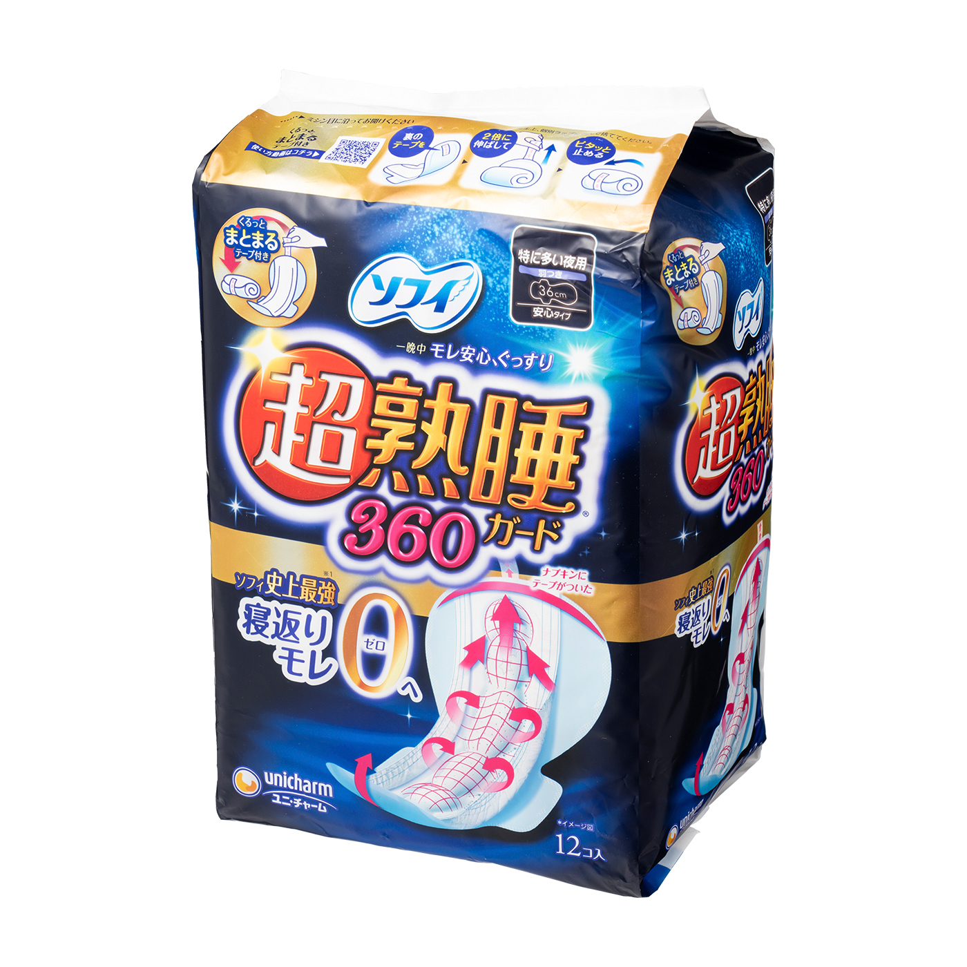 ユニ・チャームの「ソフィ 超熟睡ガード360」は、シートに後ろ漏れを防ぐクッションや、横漏れを防ぐギャザーが施されています。お尻に触れる部分には、ふわふわとした素材を使用しているのが特徴です。今回の吸水力の検証では140mLを吸水しました。女性が生理期間に出る経血量は平均20~140mLとされているので、優れた吸水力といえます。また、漏れにくさの検証では、マネキンが横になった状態でも140mLまで漏れなかったため高評価を獲得。さらに、使い心地の検証では、「柔らかい素材で肌に擦れにくい」とモニターから好評でした。ただし、サイズが大きめなうえ分厚いため、お尻がもったりしてしまうのは難点です。一方で、1枚あたりの価格は約27円と安価で購入しやすいのは魅力。吸水力が優れているうえ低コストなので、睡眠中の漏れが気になる女性にとって、強い味方になる夜用ナプキンといえます。
