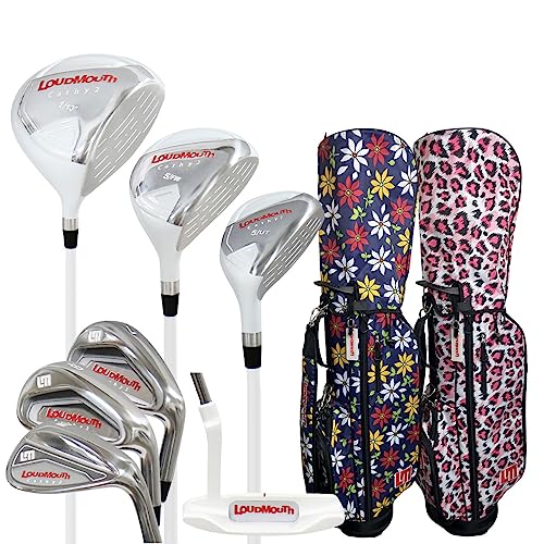 サンヴァリィの「LOUDMLOUTH ハーフ クラブセット」は、レディース向けのスターターゴルフクラブセット。ヒョウ柄・花柄の目立つ柄のデザインが特徴のキャディバッグが付属します。3万円以内で購入できるハーフセットで、安価な点が魅力です。セット内容を確認したところ、ウッド系は1W・5Wの2本、ユーティリティーは1本、アイアンは7I・9Iの組み合わせで含まれていました。加えて、ウェッジはSW、パターも付属しており、ラウンドに必要なクラブがひと通りそろった充実の内容。7本しか入っていないハーフセットのなかでは重要度の高いクラブをそろえた「わかっている商品」です。ただ、ラウンドを回るとなるとPWがなく中距離でのアプローチが難しいところや、ユーティリティーが1本しかなくロングショットの難易度が高いところには注意が必要です。ラウンドを回るならPWとU7を追加で購入すれば、不連続になっている飛距離の段階を埋められるでしょう。とりあえず練習用の安価なハーフセットを探している人には、ぴったりの商品。ラウンドを回る際にも2本追加購入するだけで大活躍するでしょう。
