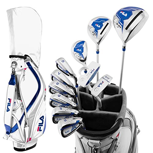 ワールドの「FILA GOLF レディースゴルフクラブセット」は、11本のクラブと専用スタンド式キャディバッグを備えた右利き用のフルセット。シャフトはカーボン製でフレックスはLです。セット内容を確認したところ、おおむね充実していました。1W・4Wの2本のウッド系、1本のユーティリティー、6I・7I・8I・9Iの4本のアイアン、2本のウェッジ、そしてチッパーとパターが1本ずつという構成で、初心者がコースデビューする際に必要なクラブがひと通りそろっているのが特徴です。多数のアイアンとウェッジが含まれているため、さまざまな状況に対応しやすい点も見逃せません。ただ、ウッド系は5番がないのでロングショットからミドルショットへ段階的に打ち分けにくい点は懸念。また、ユーティリティーが1本しかなくショットの難易度が高いところも気になるでしょう。
