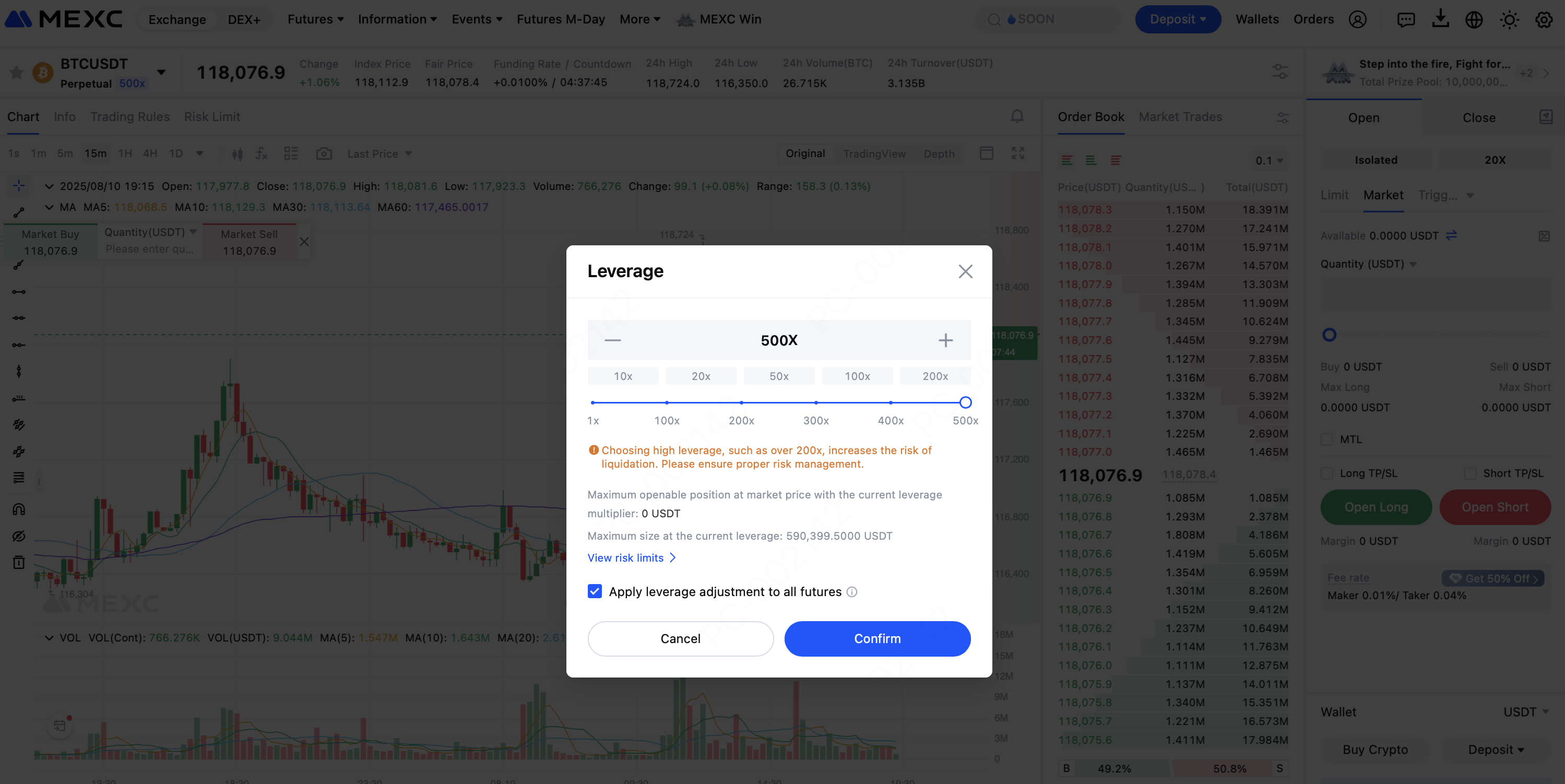For example, in BTCUSDT trading, MEXC offers leverage of up to 500x. However, for new traders, starting with low leverage, such as 2x or 5x, allows for a smoother learning curve and a better grasp of market behavior before increasing exposure.