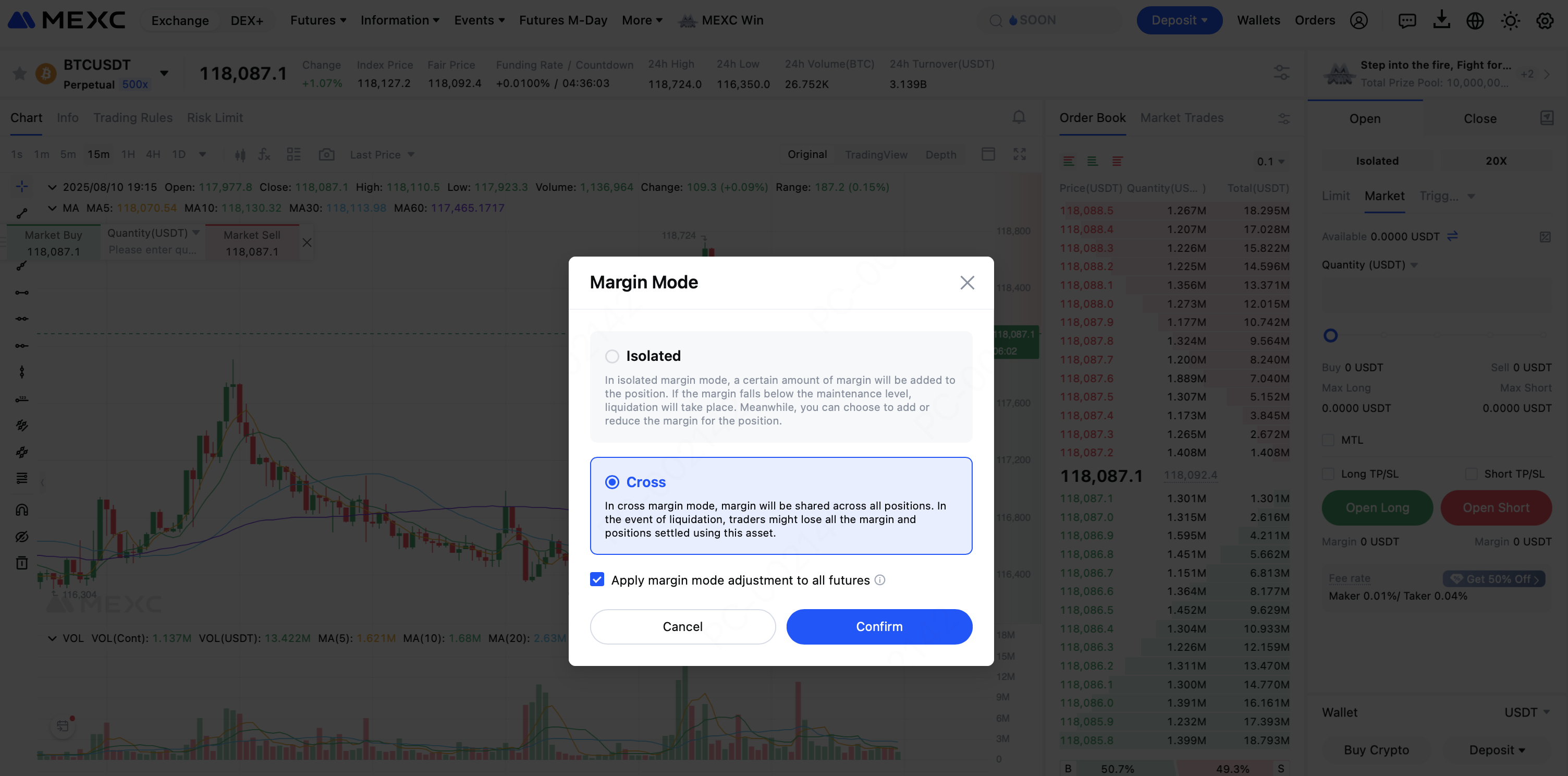 Cross Margin: Uses the entire account balance as maintenance margin for a position. This can help prevent liquidation during short-term volatility, but increases the risk of losses affecting all positions.