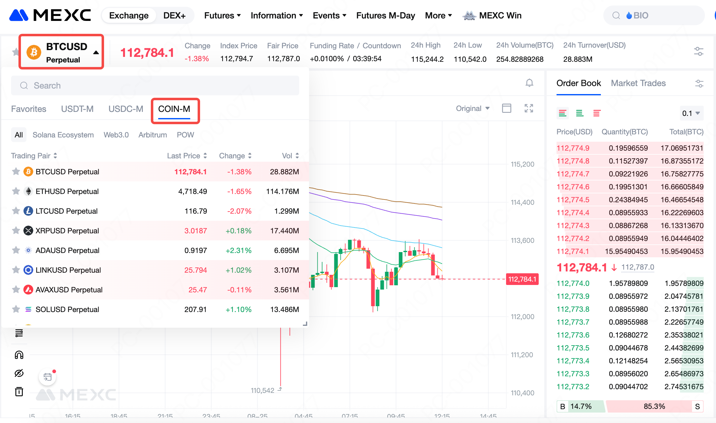 MEXC currently offers Coin-M Futures pairs including BTCUSD, ETHUSD, SOLUSD, SUIUSD, LTCUSD, XRPUSD, ADAUSD, LINKUSD, AVAXUSD, and DOGEUSD. Additional pairs may be introduced or adjusted over time in response to user demand and market conditions, so please follow official MEXC announcements for updates.