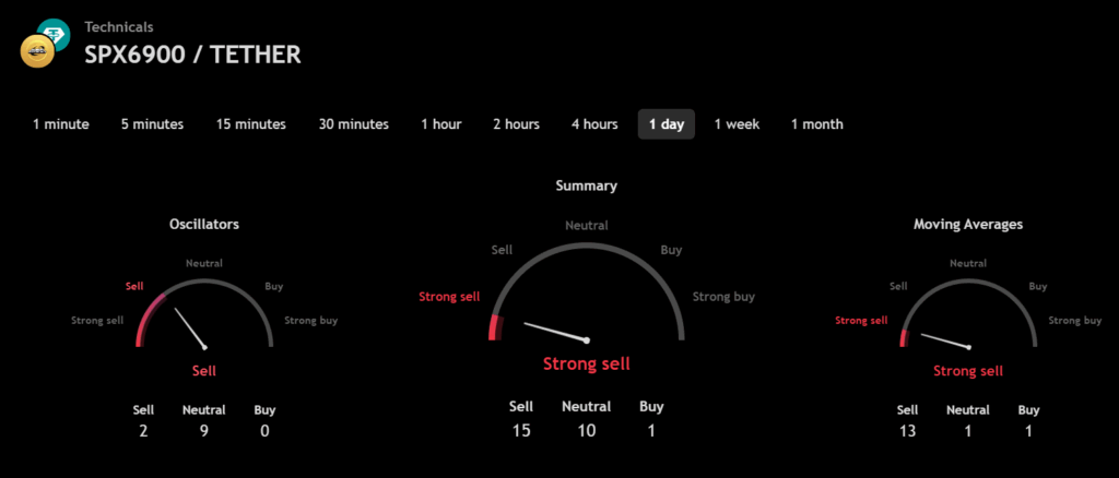 The technical analysis indicators such as Relative Volume (RVOL), Moving Average (MA), and Relative Strength Index (RSI) of SPX6900 (SPX) are shown in the chart below.