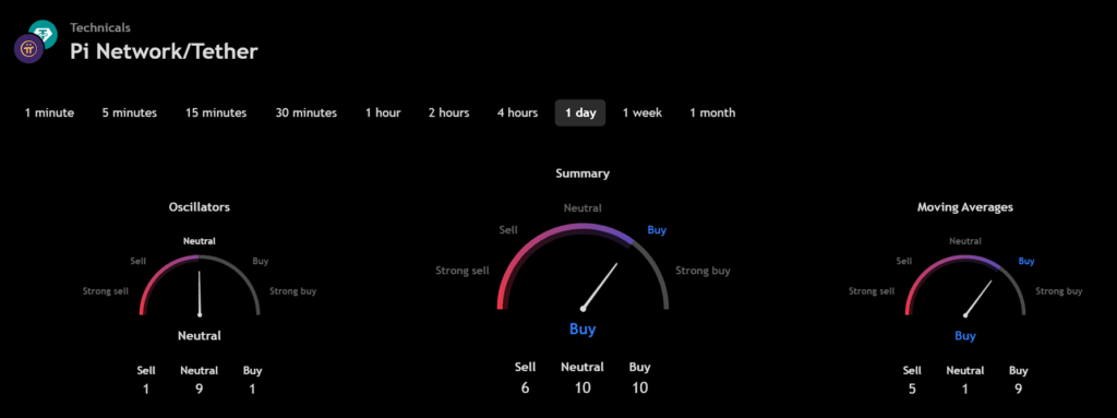 The technical analysis indicators such as Relative Volume (RVOL), Moving Average (MA), and Relative Strength Index (RSI) of Pi (PI) are shown in the chart below.