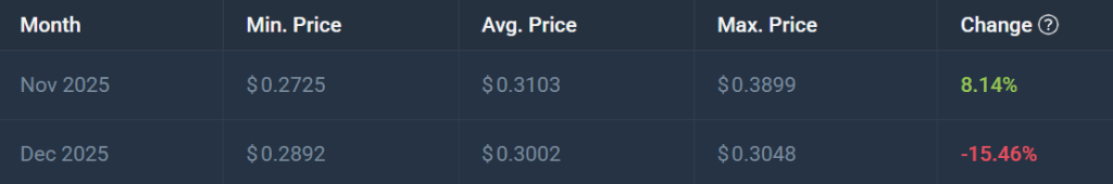 OP is showing signs of mild bullish momentum heading into November 2025, with projections suggesting an 8.14% positive monthly change. The expected trading range of $0.27 to $0.39 indicates that while OP could attempt an upside move, it is still likely to remain within a broader consolidation pattern unless buying pressure strengthens significantly.