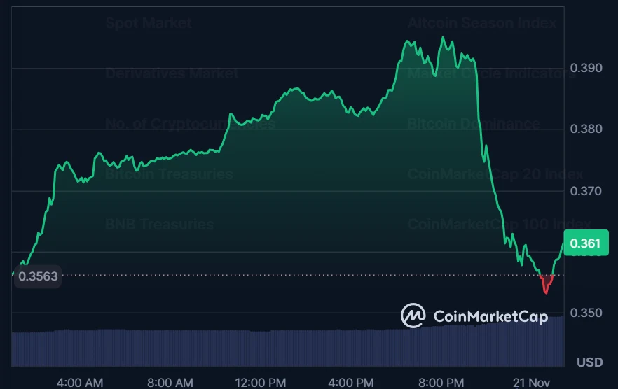 As per Coincodex data, over the next five days, OP will reach the highest price of $ 0.3899 on November 21, 2025, which would represent 8.47% growth compared to the current price.
