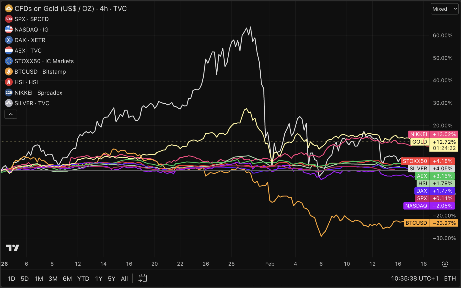 Prestaties van grote financiële assets in 2026. Bron: TradingView