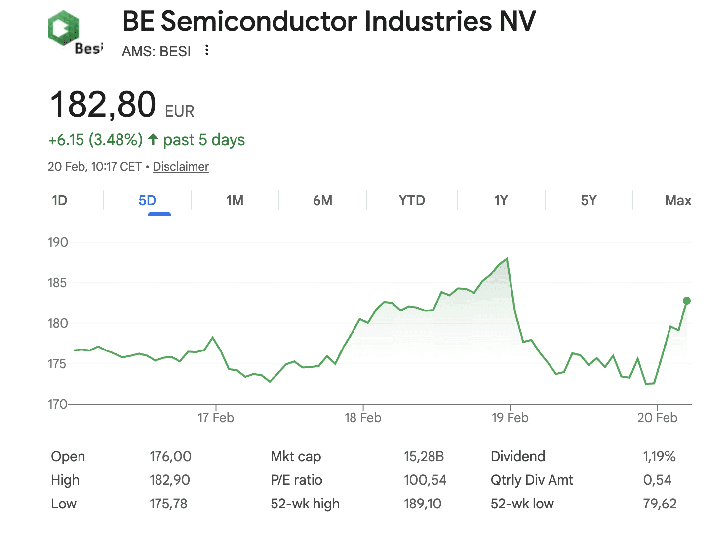 Nadat de cijfers van Besi gisteren nog slecht vielen, zien we vandaag een betere dat voor het aandeel. Op het moment van schrijven staat er een stijging van 5,69 procent op de borden voor deze chipper.
