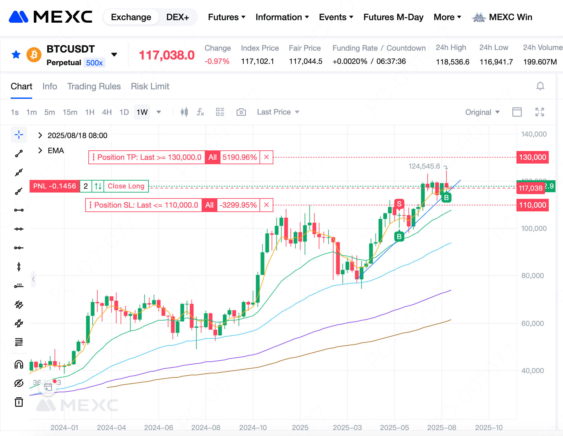 TP/SL означает предварительную установку тейк-профит (TP) и стоп-лосс (SL) для позиций, которые собираются открыть. Пользователи могут установить TP/SL при открытии позиции. Затем вы можете выбрать последнюю, справедливую или индексную цену в качестве триггера для TP/SL. Когда ордер исполняется (полностью или частично) по лимитной или рыночной цене, система немедленно размещает ордер TP/SL на основе заранее установленной триггерной цены.