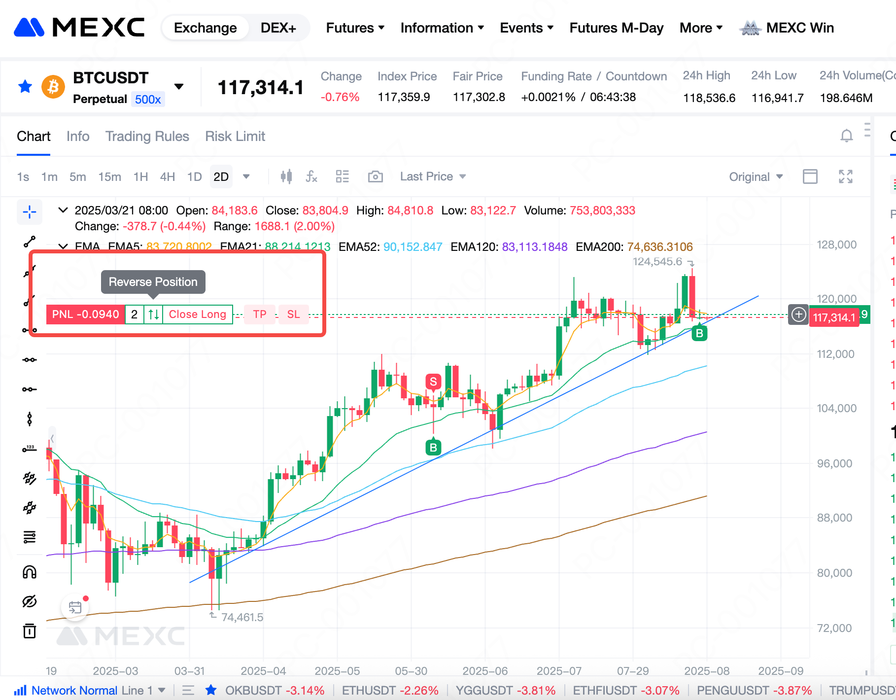 Во фьючерсной торговле криптовалютами возможности часто появляются и исчезают очень быстро. Многие инвесторы надеются иметь возможность открывать или закрывать позиции прямо на свечном графике, анализируя движения цен, чтобы уловить колебания рынка. Чтобы удовлетворить эти потребности, MEXC Фьючерсы теперь поддерживает торговлю прямо со свечном графике. В этой статье мы расскажем вам, как это сделать. В настоящее время торговля на свечном графике поддерживается только в веб-версии. В этой статье для демонстрации используется веб-интерфейс фьючерсов USDT-M.