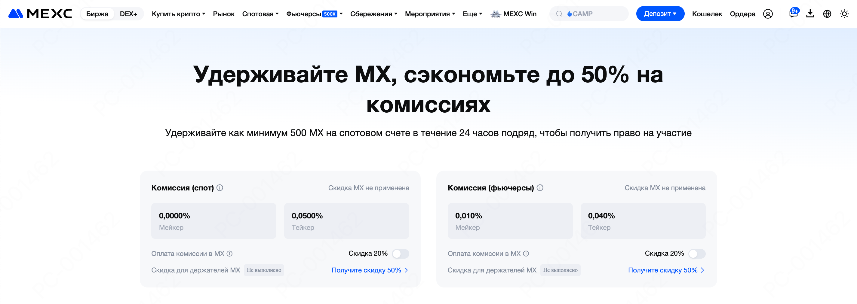По состоянию на 16 августа 2025 года, согласно последнему графику комиссий, обычные пользователи MEXC платят 0,01% комиссии за ордера мейкера и 0,04% комиссии за ордера тейкера при торговле бессрочными фьючерсами. Пользователи, удерживающие не менее 500 токенов MX, также могут воспользоваться дополнительной 50% скидкой. Для получения более подробной информации, пожалуйста, ознакомьтесь с официальными комиссиями MEXC. Ставки могут варьироваться в зависимости от страны или региона, поэтому пользователи должны ориентироваться на страницу с комиссиями для получения самой последней информации.