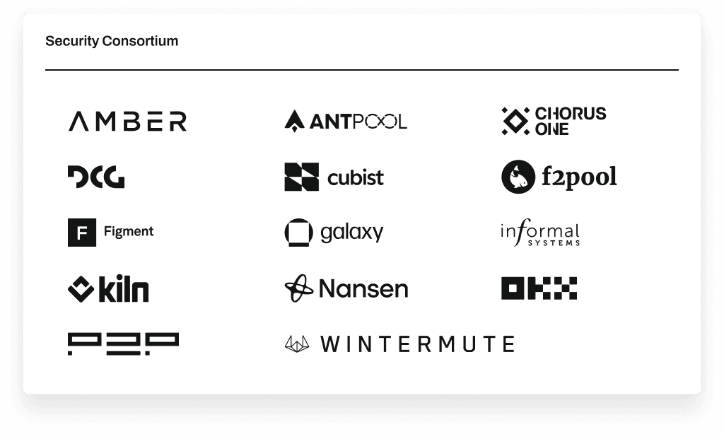 2) Надежный альянс по безопасности: Поддерживается коалицией из 14 ведущих учреждений в сфере цифровых активов, включая OKX, Galaxy и DCG, для защиты активов пользователей.
