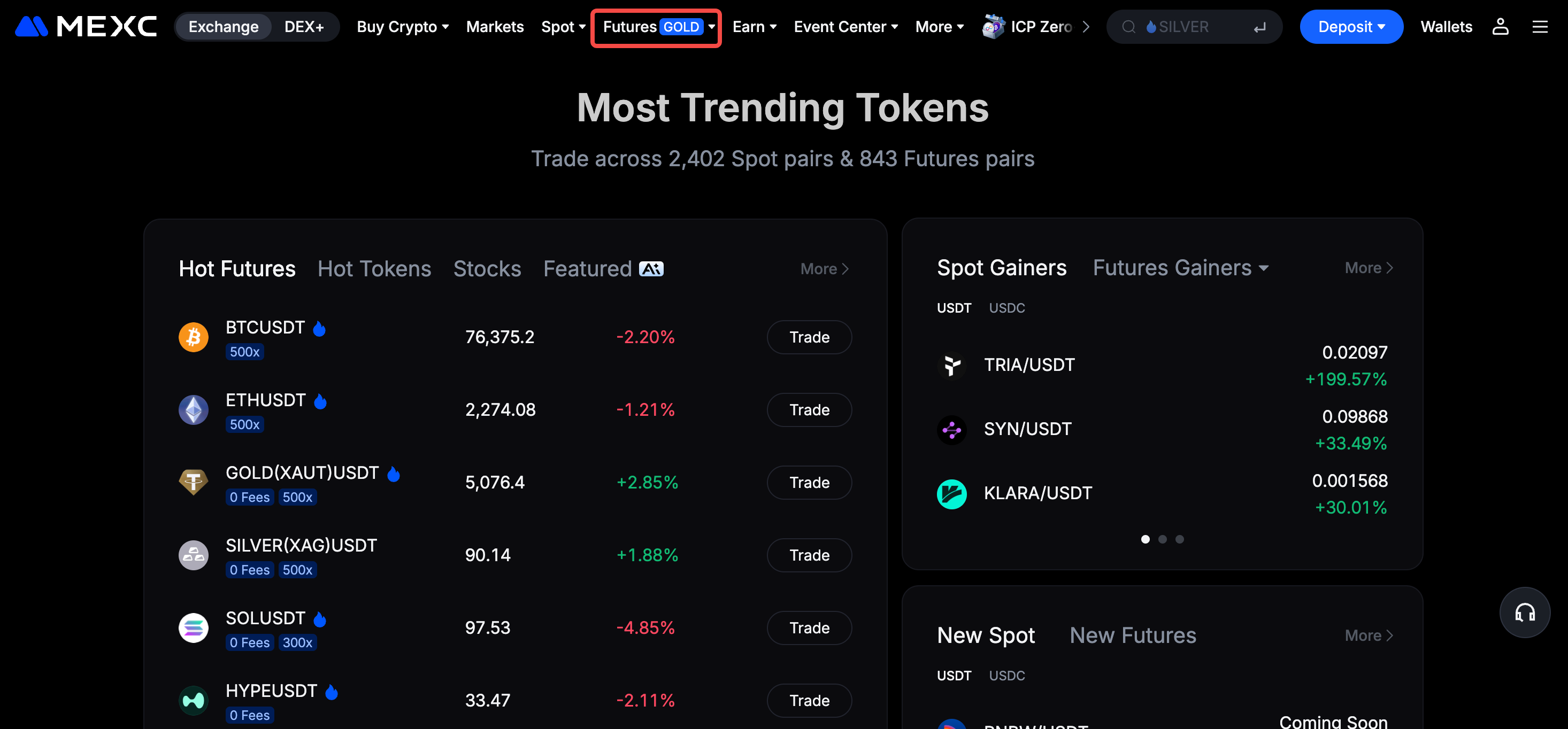 Visit the MEXC official website and log in to your account. Then, click Futures in the navigation bar to enter the Futures trading page.