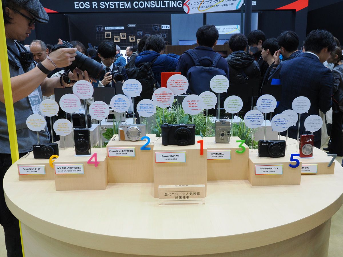 另外Canon還擺放一區歷代PowerShot票選的前7名機型,從第7名至第1名分別是IXY 200(IXUS 185),PowerShot S120,PowerShot G7 X,IXY 600(IXUS 500)/IXY 650m,IXY Digital(Digital IXUS),PowerShot SX740 HS,奪冠的是目前相當熱門的影音相機PowerShot V1。